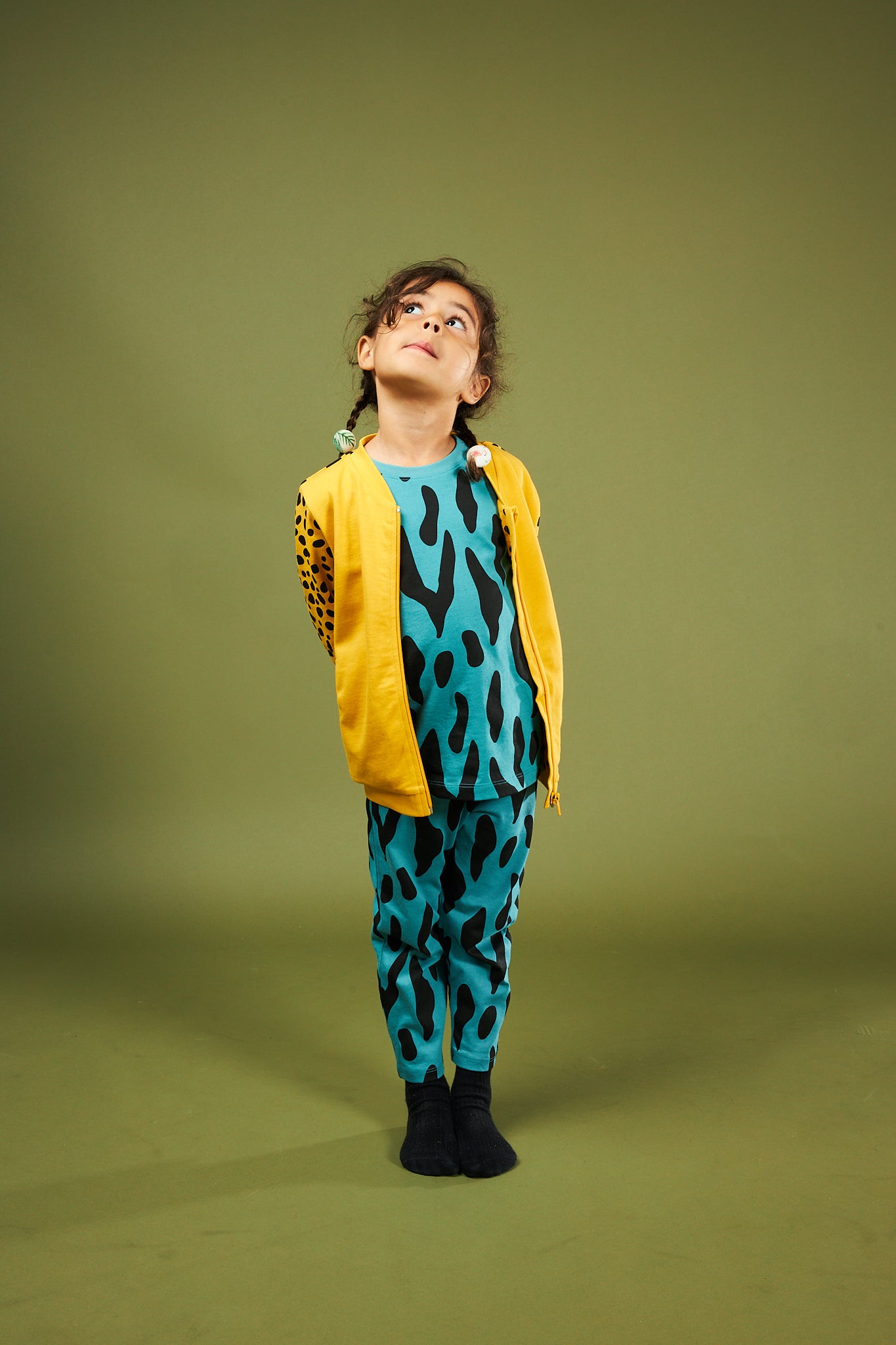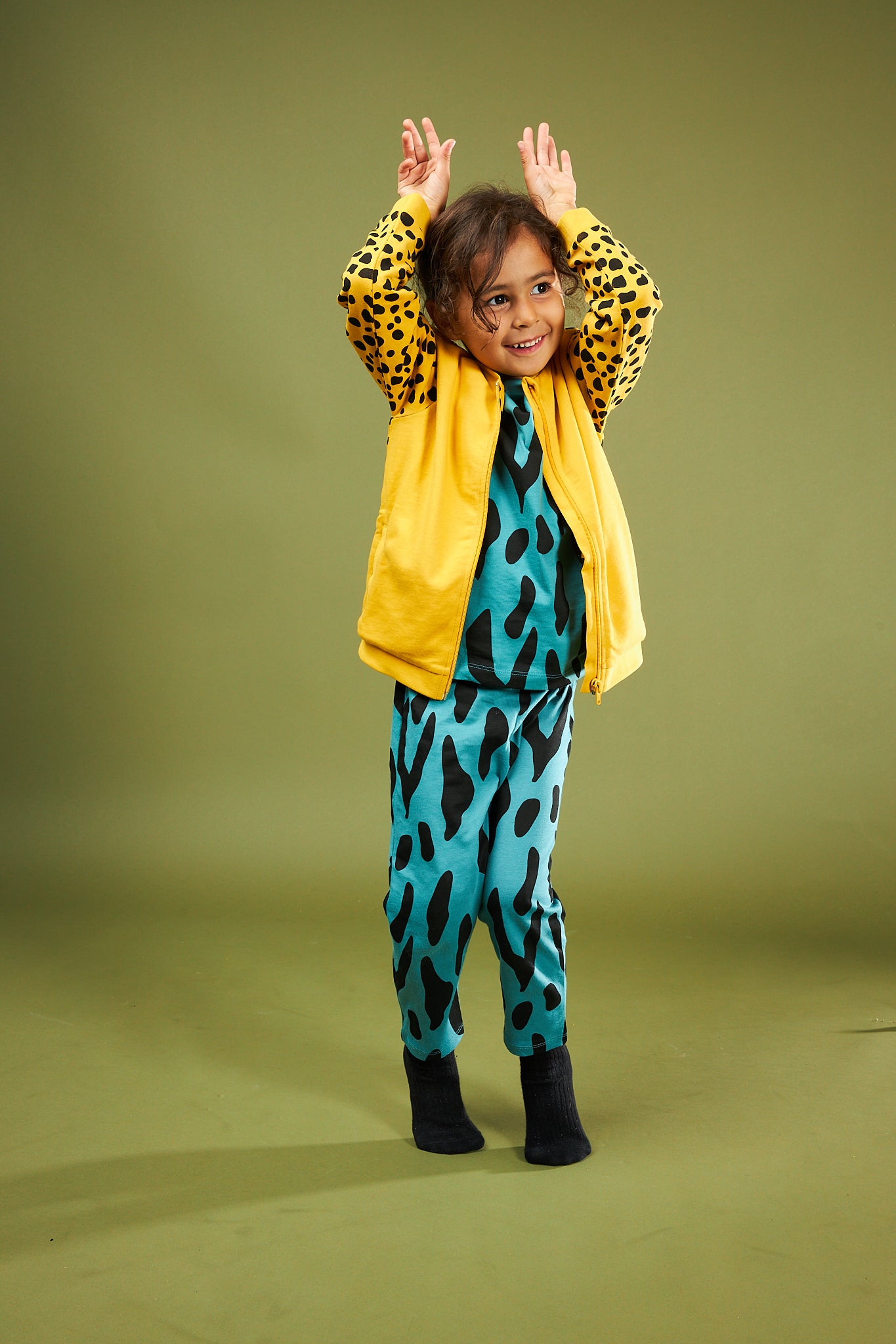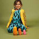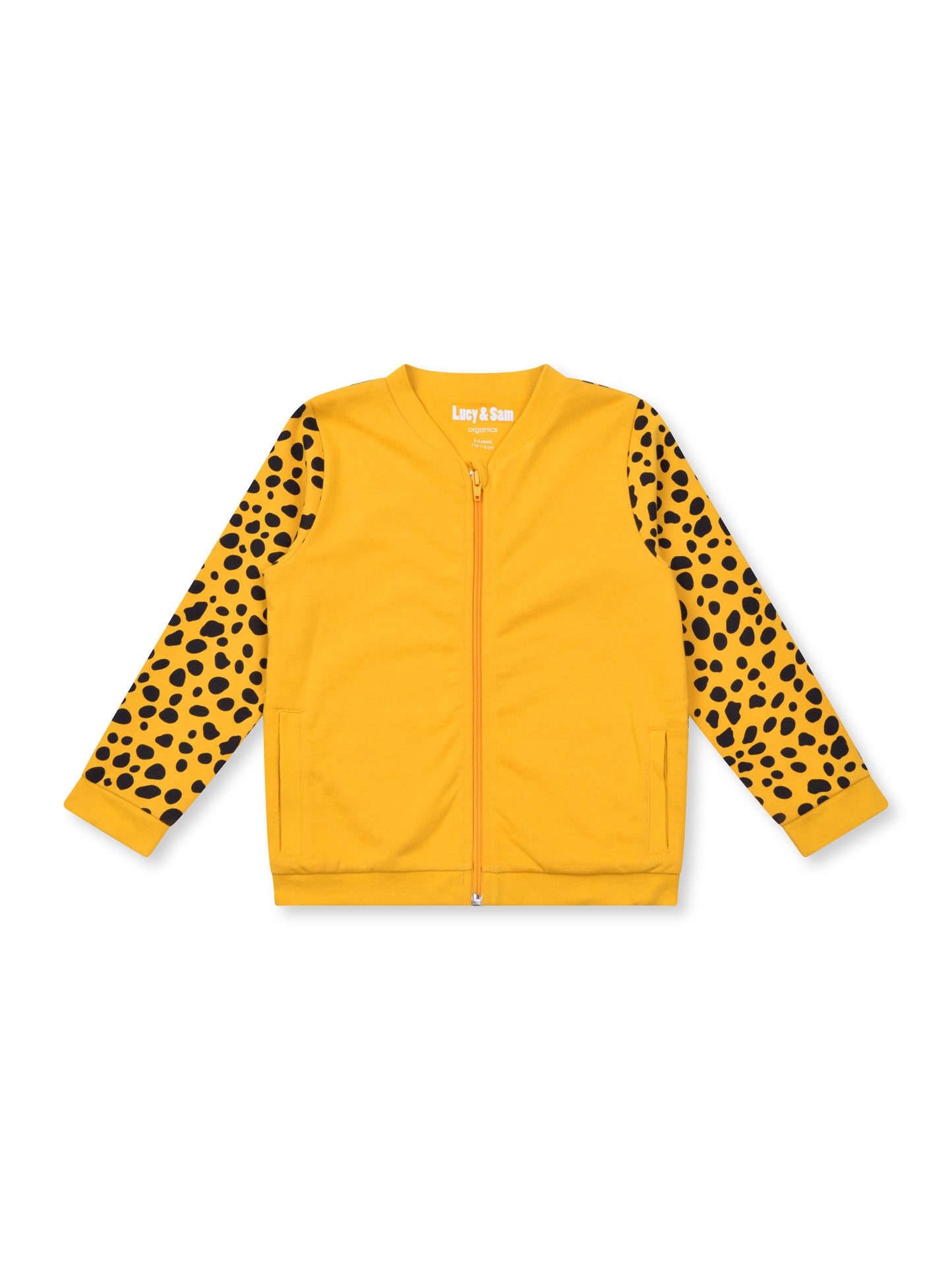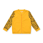 Cool, fun and unique bomber jacket for toddlers and kids! Be one of the cool cubs in this unisex toddler bomber jacket. Cheetah print sleeves and back with a solid yellow front this style has a fully lined inner and pockets in our funky Cheetah print. Yellow chunky ribs and YKK zip bring this style together. Match with our Just be You tees and leggings to complete the look.