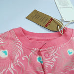 Wrap your little one in softness and elegance with our Peacock Button Babygrow, part of the nature-inspired Skins Collection. Designed to mimic the delicate beauty of peacock feathers, this dreamy piece features a rich pink base adorned with intricate white feather patterns and soft heart-shaped accents at the center of each plume.