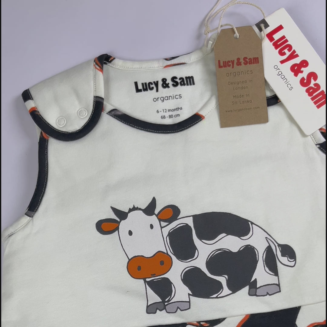 Designed for warmth and safety, this sleeping bag has a thermal rating of 2.5 TOG, making it ideal for cooler nights. The bold cow print body is complemented by a sweet hand-drawn cow motif on the chest. The side zip fastening makes nighttime changes quick and hassle-free, while the adjustable shoulder poppers ensure a snug and secure fit. Perfect for keeping your little dreamer cozy and safe, whether at home or on the go
