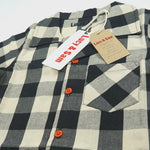 Featuring a black-and-of white check pattern, orange buttons, and a contrast chest pocket, this shirt is all about laid-back style. The back showcases our signature hand-drawn cow and "Mooooning Around" slogan patch, adding a fun surprise from behind. Dress it up with trousers or down with joggers—perfect for everyday mischief or special outings.