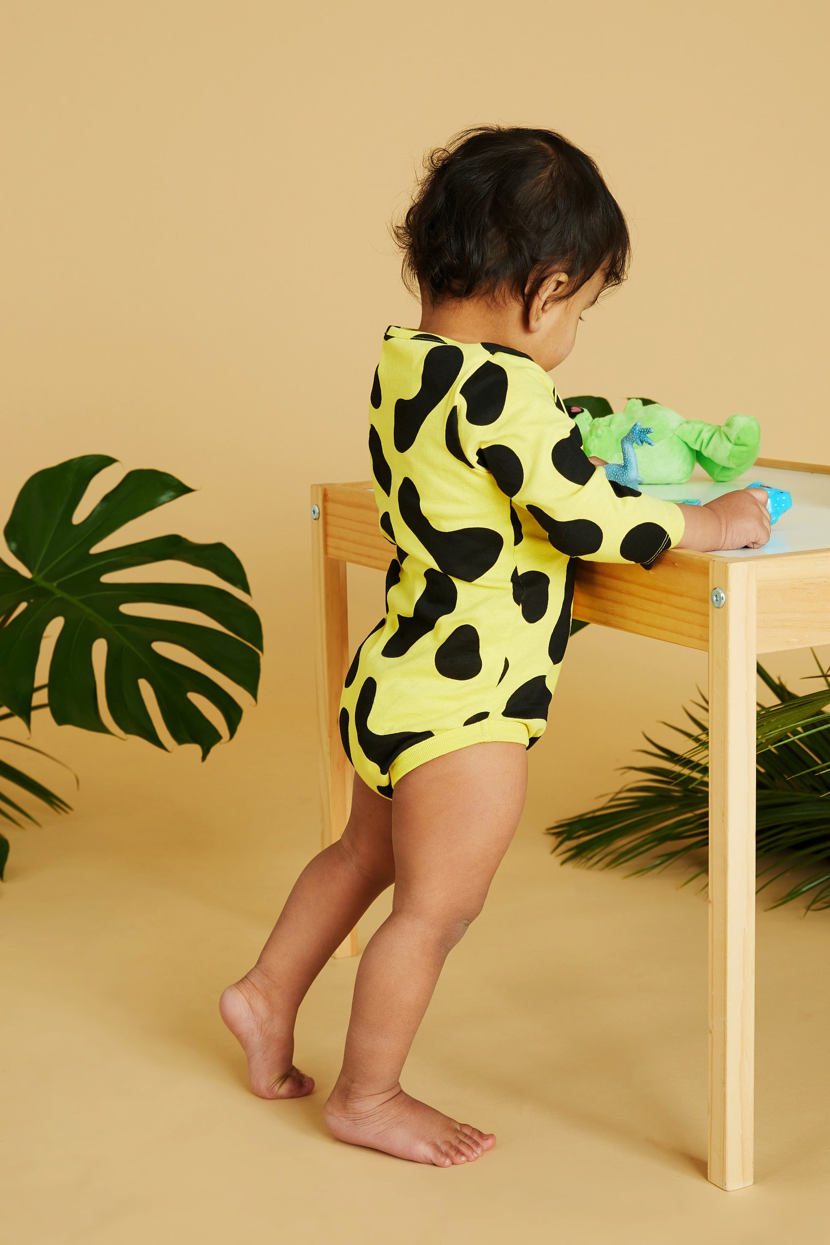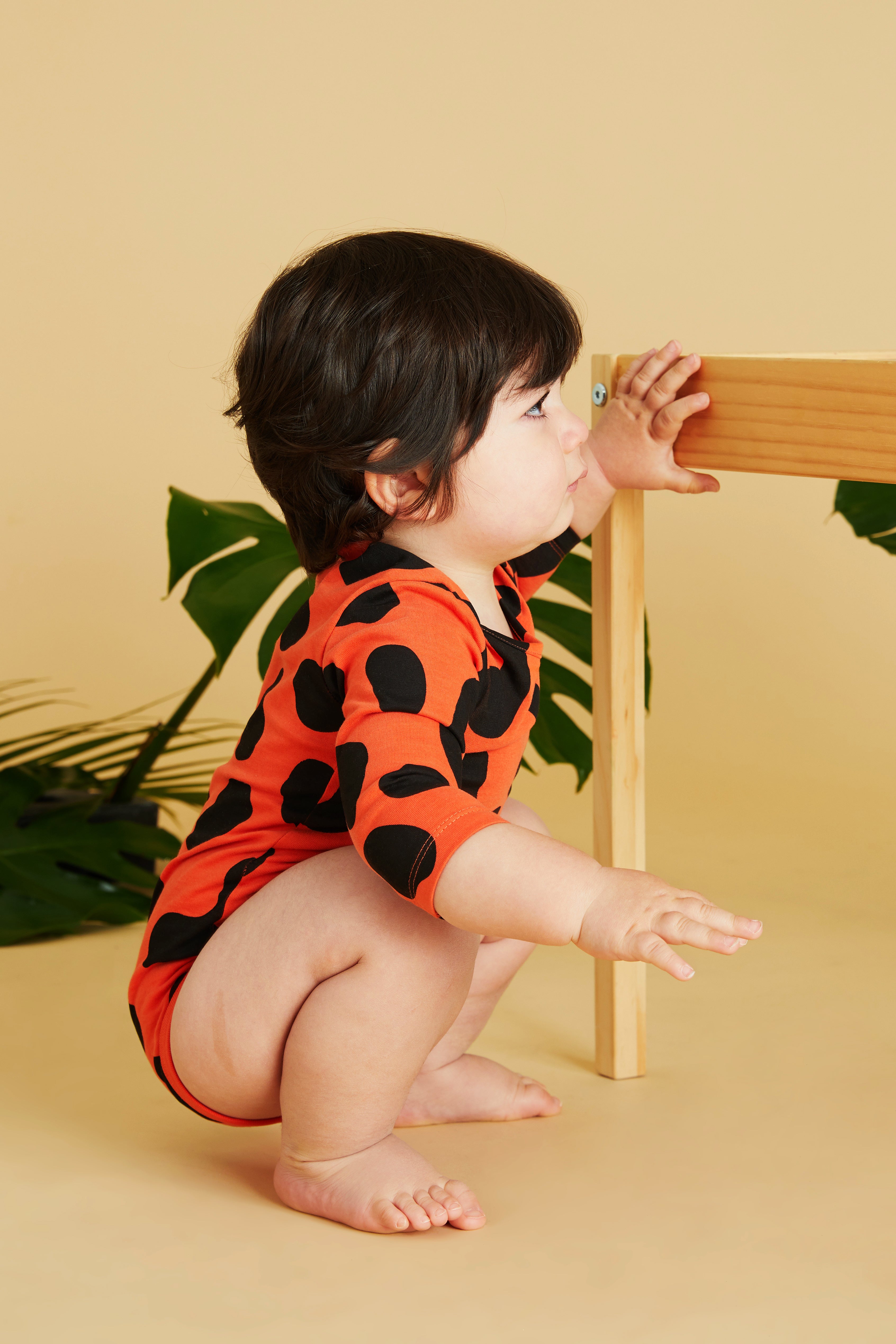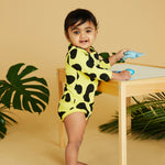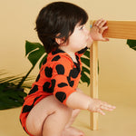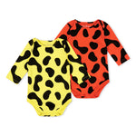 Fun, colourful, unique and essential baby bodies! These bright and bold Frog Camo long sleeve vests are perfect for regular use and layering up in the colder days. In our bright red and yellow Frog Camo prints these tops can be mixed and matched with our Frog Camo leggings and joggers in a variety of colourful, coordinated combinations! Your little jumpers can leapfrog from one colour to the next in these vivid all over prints!