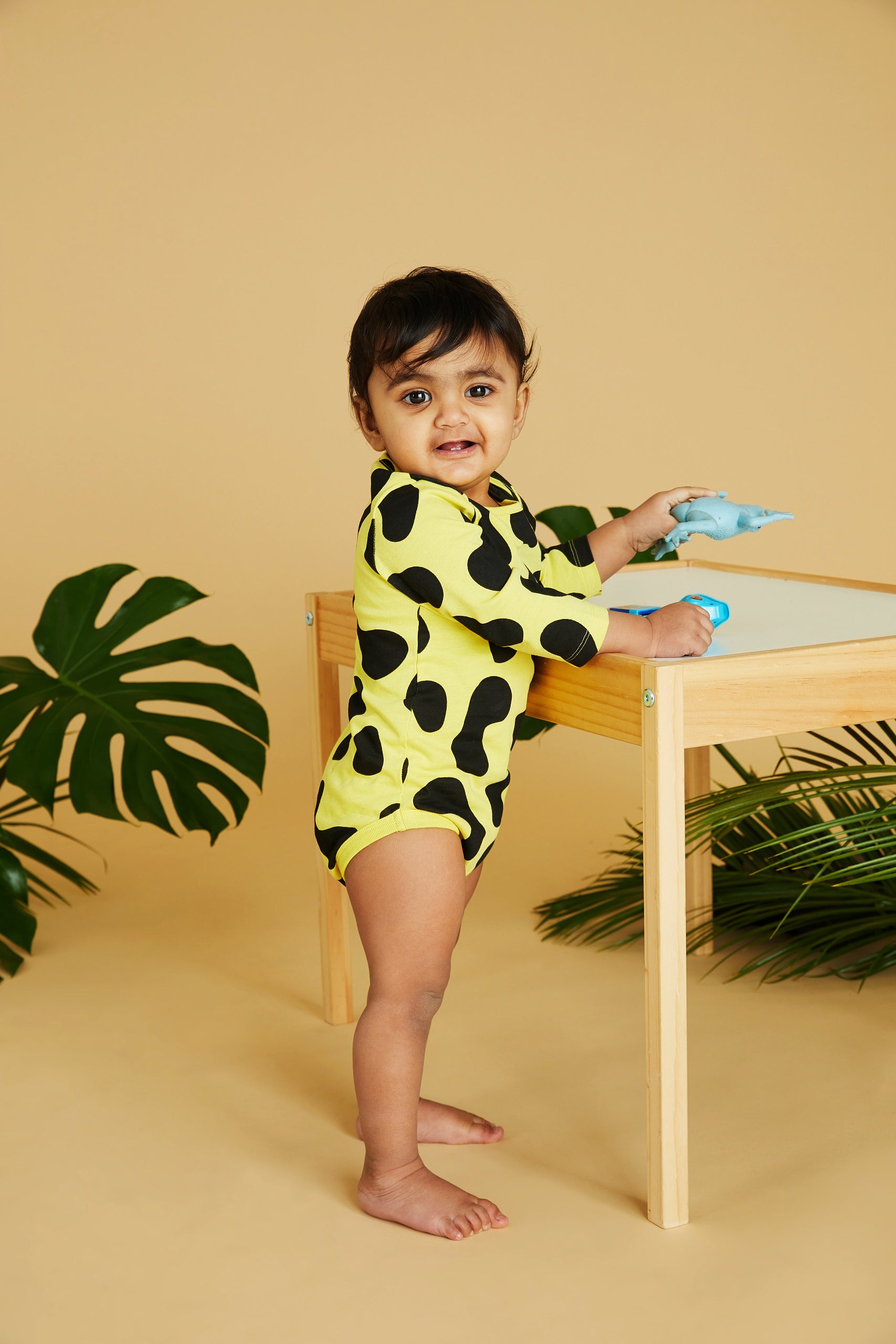 • Envelope neck, leg rib and 3 bottom poppers for easy dressing