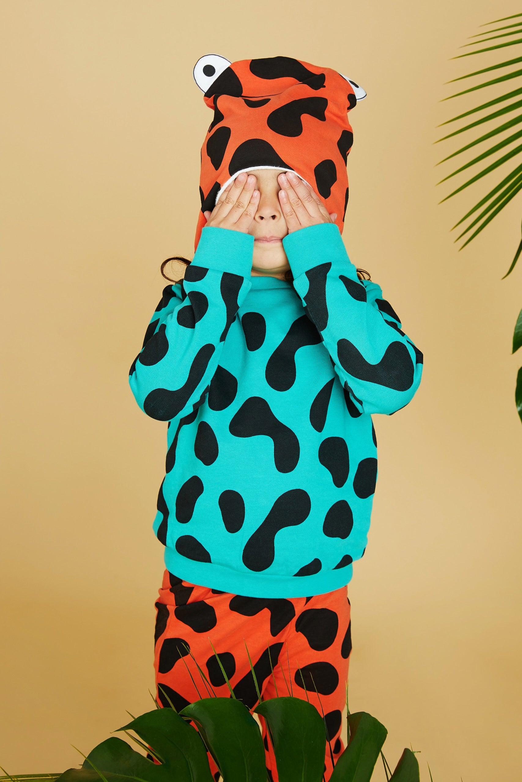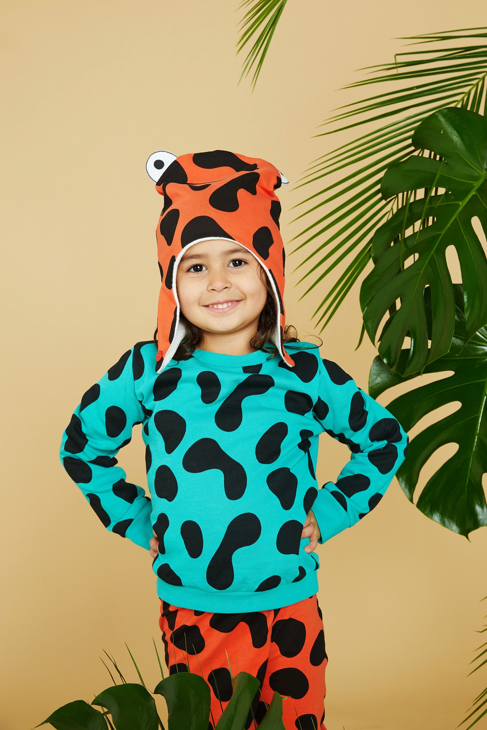 Bright, bold and unique unisex beanie hat for babies, toddlers and kids! Super warm and cosy kids winter hat in our Bright Red base with funky original Frog camo all over print! This winter warmer in fully lined in soft organic fleece fabric to keep your happy hoppers comfy during outdoor adventures. All of our toddler and kids hats can be mixed and matched with our Frog Camo, tops, leggings and joggers in a variety of colourful, coordinated combinations! Your little jumpers can leapfrog from one colour to the next in these vivid all over prints!