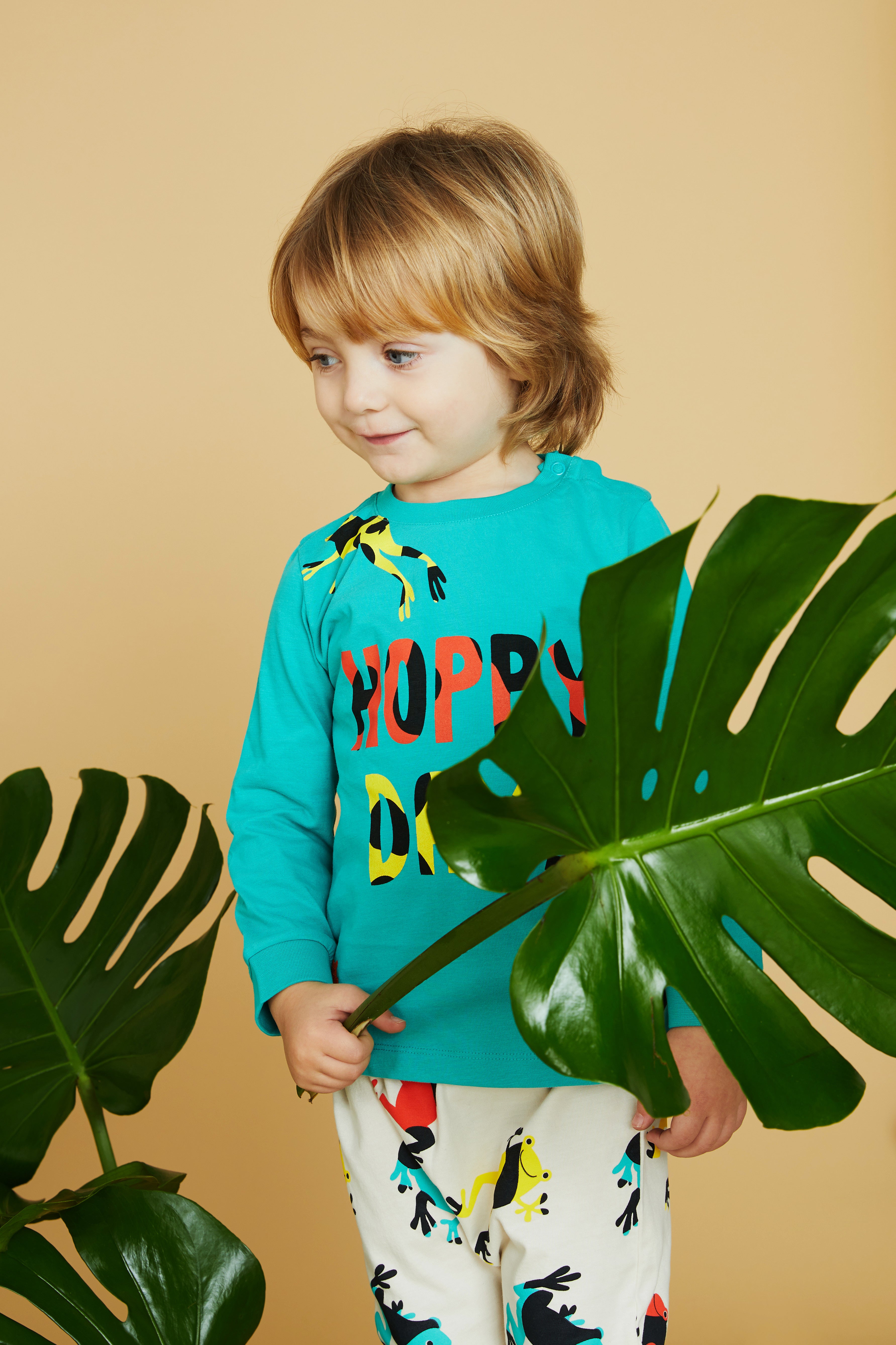 Fun, colourful unique and unisex harem pants for babies, toddlers and kids! On a super soft and comfy organic jersey birch base sits our bright and bold tropical frog all over print in green, red and yellow. This multicoloured jogger can be mixed and matched with any of our tee shirts and our coordinated sweats and hoodies. Your little leapers will stand out from the crowd in our hoppy poppy prints!